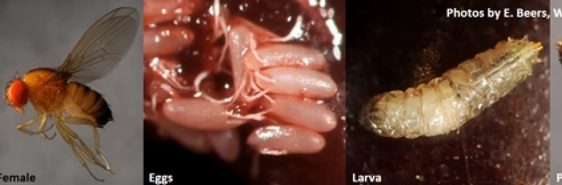 Life stages of spotted-wing drosophila (Photos by Elizabeth Beers, Washington State University)