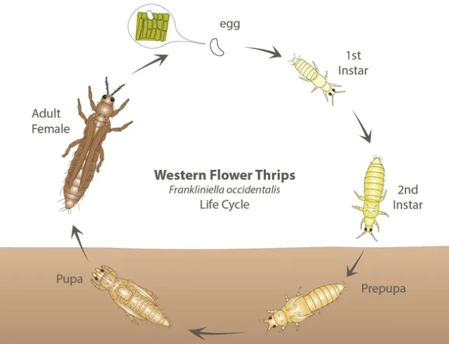Life cycle of the western flower thrips (Graphic courtesy: Biobee Biological Systems)