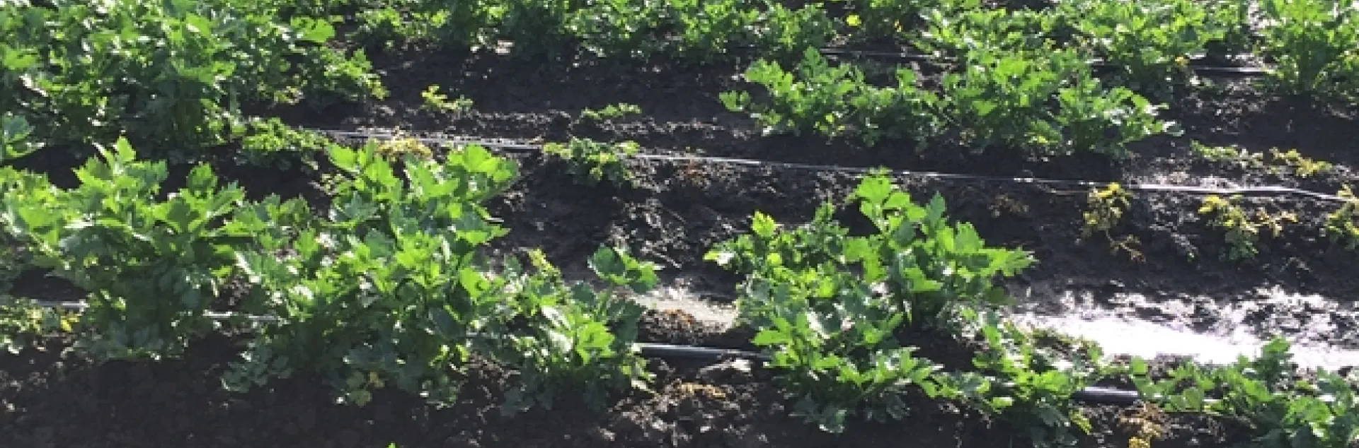 Organic celery field in Santa Maria. Aphid damage to the roots stunted the plant growth and reduced the plant stand. Photo by Surendra Dara