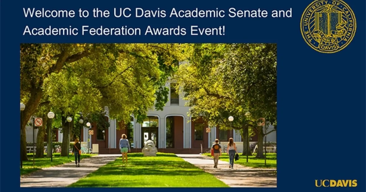Provost Mary Croughan, in her welcoming address, praised the 14 recipients for their excellent work, and also thanked the entire faculty workforce for their research, teaching and public service commitments during the two-year pandemic. Richard Tucker, chair of the Academic Senate, presented the Senate's awards and Martin Smith, chair of the Academic Federation, handed out the Federation's awards.