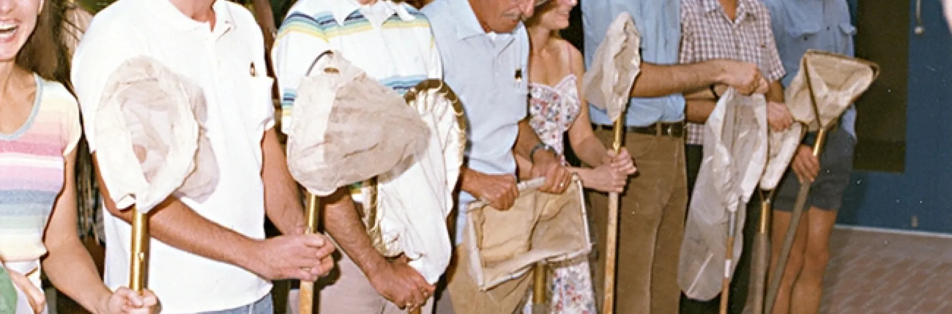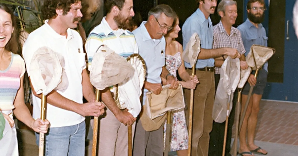 One of the funniest memories, Kimsey related, occurred at Briggs Hall in 1986 when noted UC Davis entomology professor Richard "Doc" Bohart (1913-2007) received a 21-Insect Net Salute at the campuswide dedication of the museum in his honor. Entomology faculty and students lined up with their insect nets, forming an archway as Doc Bohart sauntered through. UC Davis Chancellor James Meyer (1922-2002) conducted the dedication. At the time, Kimsey was a postdoctoral scholar in the Doc Bohart lab. He had earlier served as her major professor.