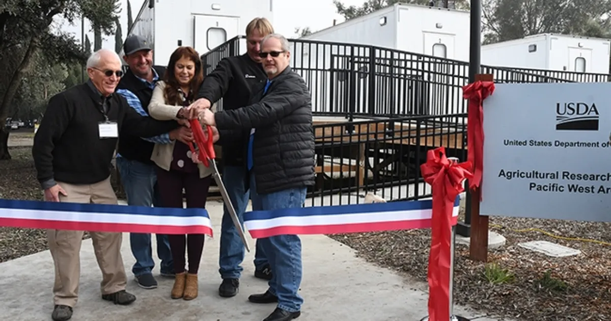 Queen bee breeder Jackie Park-Burris, a past president of the California State Beekeepers' Association and a leader in the industry, snipped the ribbon Jan. 7 in 45-degree temperature, joining a group of other stakeholders to open the U.S. Department of Agriculture's Agricultural Research Service (USDA-ARS) bee research facility.