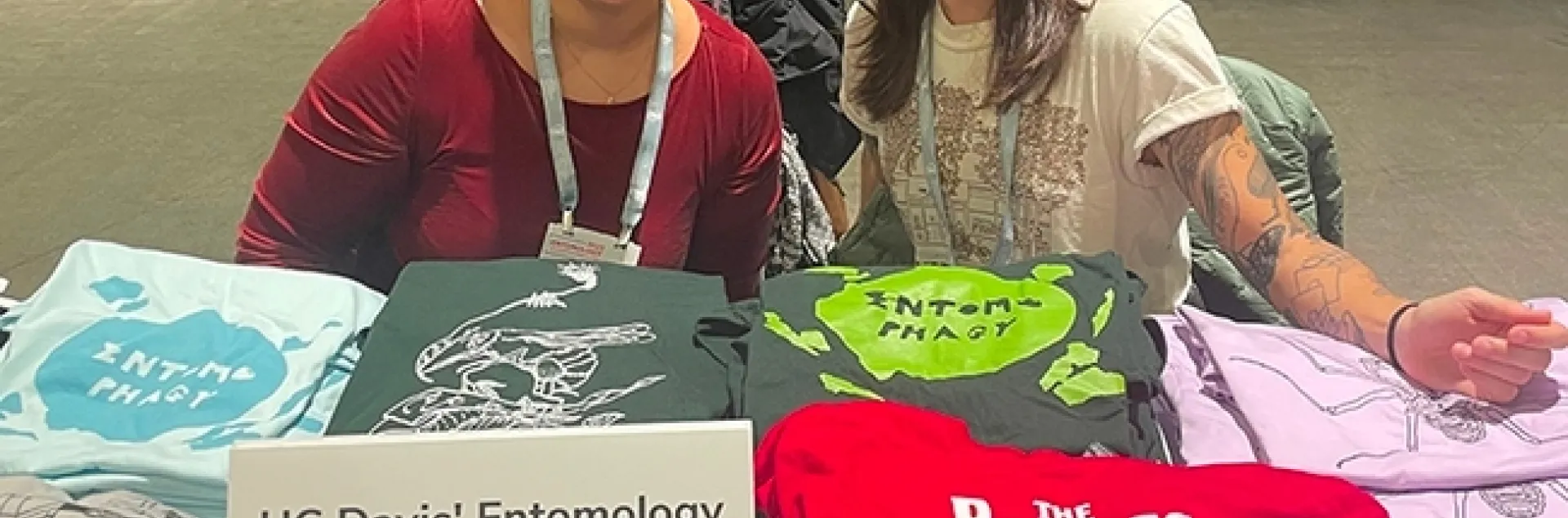 EGSA members design insect and arachnid-themed T-shirts that climb, crawl, jump, roll, flutter, buzz, fly or otherwise position themselves on EGSA T-shirts. They can be viewed and ordered online at https://mkt.com/UCDavisEntGrad/.