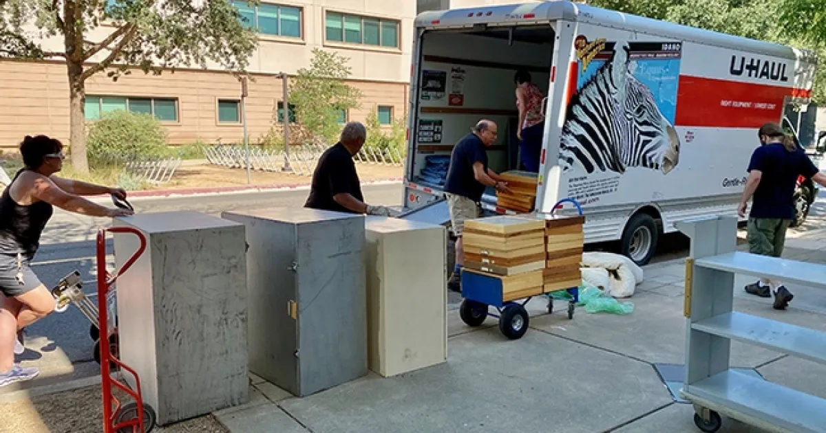 A trio of entomologists—Lynn Kimsey and her husband, forensic entomologist Robert Kimsey of the Department of Entomology and Nematology; and Bohart Museum research associate Brennen Dyer—prepared a space in the Bohart for the large donation. They unloaded the truck with Kimsey friends, retired Placer County Sheriff Mike Whitney and his wife, Becky.