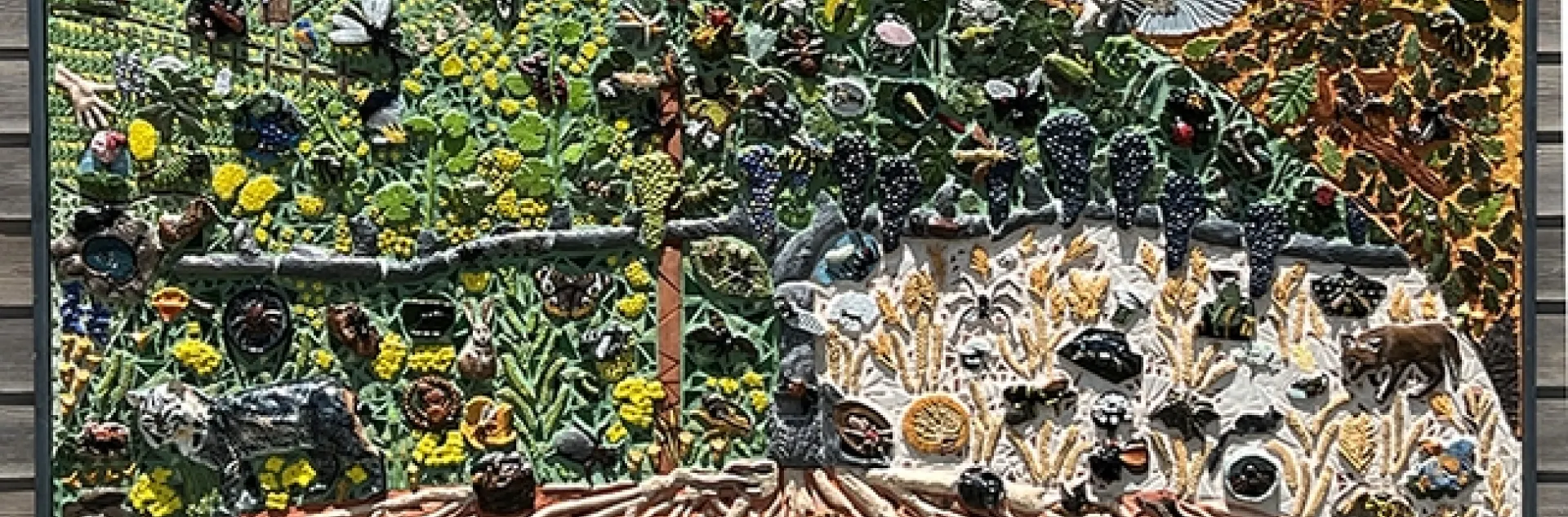 “The Secret Life of Vineyards,” an insect-themed ceramic-mosaic mural created by a UC Davis team and recently installed at the Matthiasson Winery on Dry Creek Road, Napa,  won't be a secret much longer.