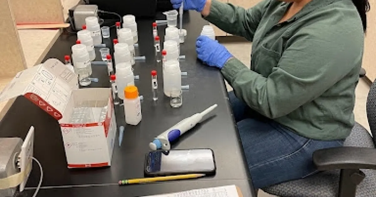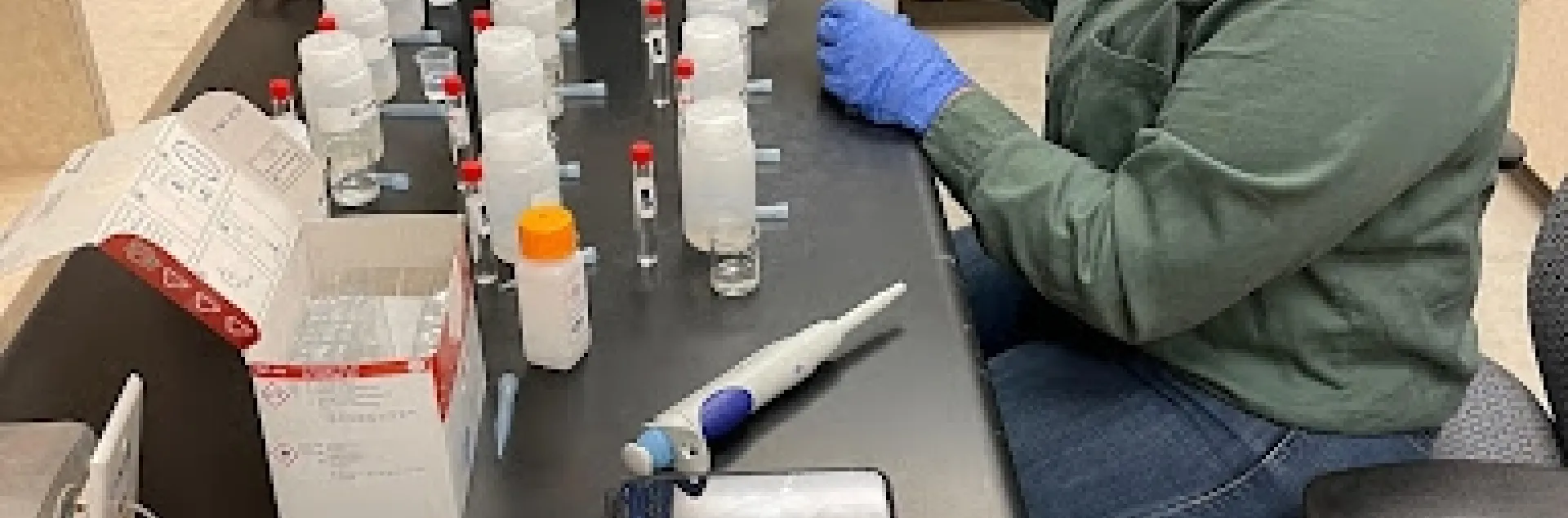 Dianely sitting at a lab bench and pipetting