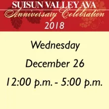 Did you know that, in order to designate a wine as "Suisun Valley", 85 percent of the grapes used to make the wine must have been grown within the Suisun Valley AVA? When you tour Suisun Valley during this Aniversary Celebration you are helping to support the vintners and growers that are behind a very special area. The Anniversary Celebration "Tasting Pass" is a one day pass to taste the wines and other offerings around the Suisun Valley AVA at participating locations. By buyint a ticket to the Anniversary Celebration, attendees will be able to waive the normal tasting fees at the eleven participating locations and enjoy a fun day with friends and family.