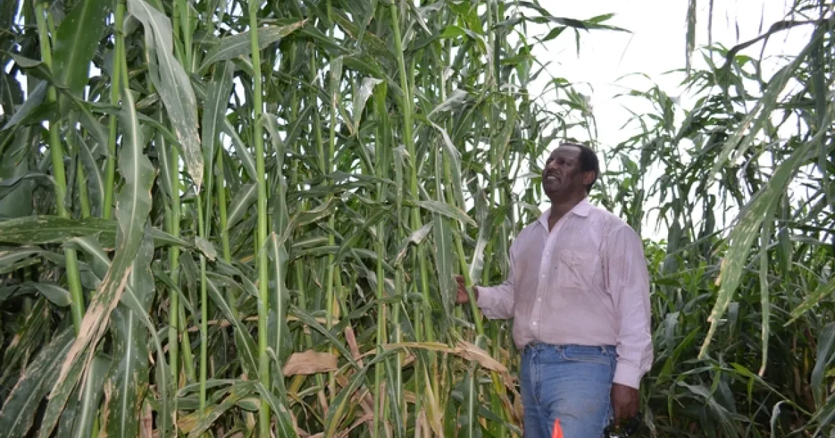Oli Bachie, shown in a forage sorghum trial field, researches new crops for Imperial County farmers to grow in the low desert.