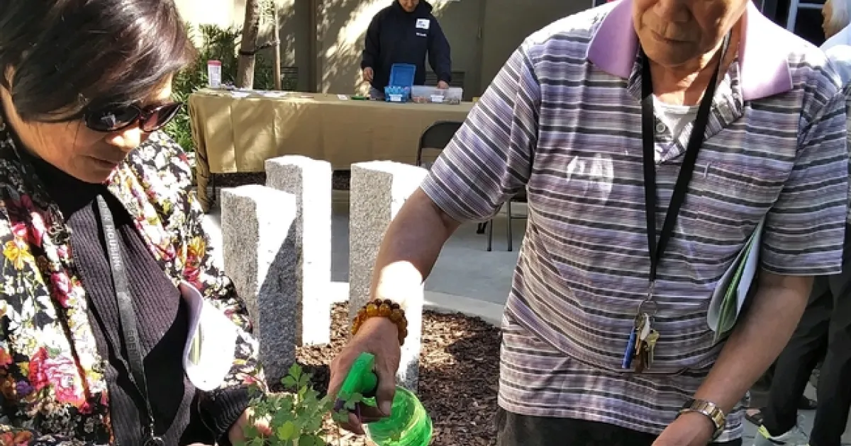 “I didn't know I would get so much soil today, now I can grow more cucumbers in my room!” said Miss Anita as she placed fresh soil into her plant pottery on Community Planting Day. The Estabrook Place resident was a first-time participant of a new gardening program for older adults hosted by the University of California Cooperative Extension in Alameda County.