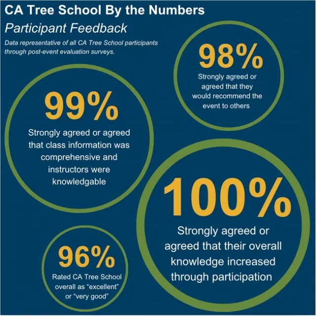 A diversity of participant backgrounds also led to lively discussions during classes, an observation shared by El Dorado session instructor Martin MacKenzie. MacKenzie is a forest pathologist with the U.S. Forest Service and noticed that students in his Forest Pathology classes had wide-ranging questions and were happy to share their knowledge with others. “Teaching at CA Tree School was excellent,” MacKenzie said. “The audience of students wanted to be there, and they wanted to learn.”