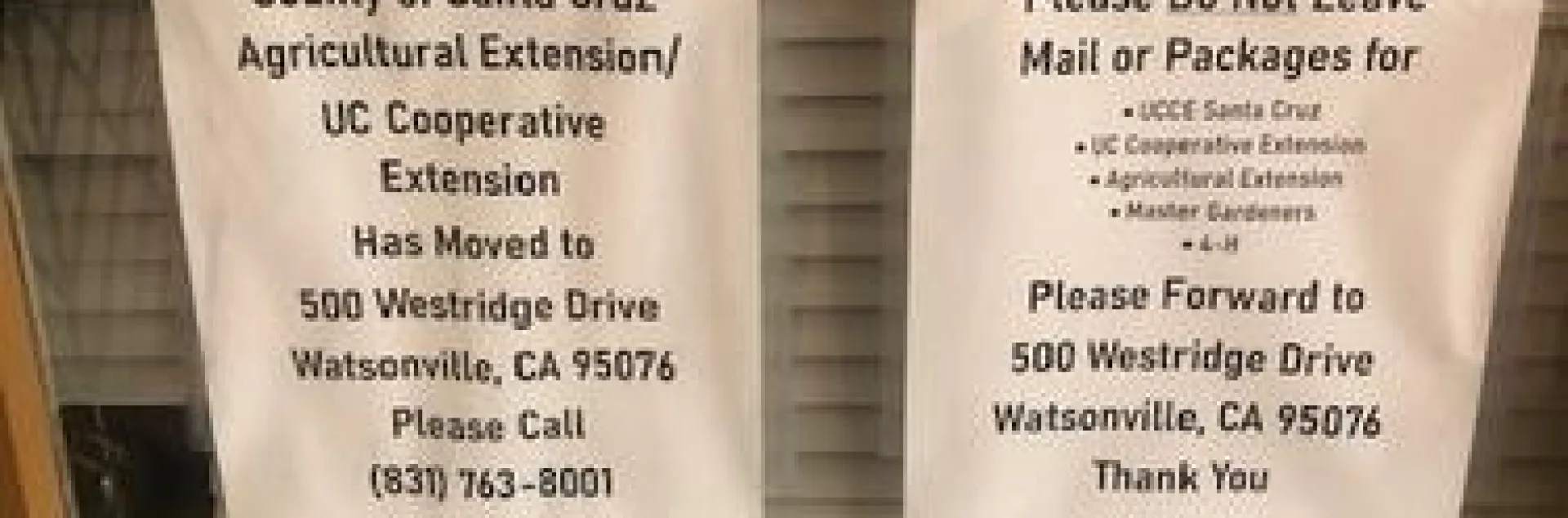 Hemos mudado nuestra oficina de 1430 Freedom a un nuevo lugar en la direccion 500 Westridge Drive. Es todavía en Watsonville, solo está al otro lado de la ciudad. Esto es una parte de un esfuerzo de proveer más servicios en el sur del Condado.