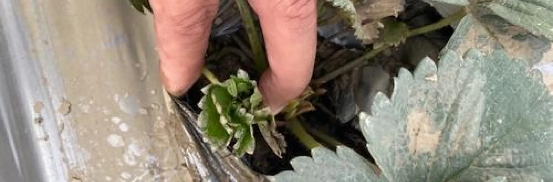 Es importante en este momento de pensar en nutrición de la planta. Es muy seguro que campos que aun recibieron fertilizante pre-plantar hayan perdido una buena proporción de esto durante las inundaciones y lluvias sin precedentes en los últimos meses. De tal manera que es posible que estemos equivocados con esto, los productores y sus managers como primer paso es tomar muestras de suelo y evaluar los niveles de nitrógeno mineralizado, sobre todo la cantidad de nitrato, lo cual es la forma de nitrógeno más asimilable por la planta de fresa. Cuando el suelo se vuelve oxigenado, nitrógeno en forma de nitrato también se mineraliza de la materia orgánica del suelo y enmiendas cualquieras que fueron incorporadas. Muestras del suelo se debe colectar desde 8 a 12 lugares del campo, de 8 a 12 pulgadas de hondo y a lado de la hilera. Una vez recolectada, estas muestras se junta y mezcla para hacer una muestra sola. Una parte de esta muestra se saca para análisis de las formas minerales de nitrógeno, quiere decir nitrato y amonio. Recomendamos usar el “nitrate quick test” (prueba rápida de nitrato para evaluar el estatus del nitrato en su suelo en una forma pronta). Se puede ver en este articulo como se hace esta prueba. Si intenta de mandar una muestra de suelo al laboratorio analítico, sugerimos mandarla sobre “hielo azul” (blue ice – hielo azul en forma gelatina) para prevenir la mineralización de nitrógeno sigue en tránsito. El laboratorio debe analizar la muestra para nitrato tanto amonio, las dos formas de nitrógeno existentes en el suelo.