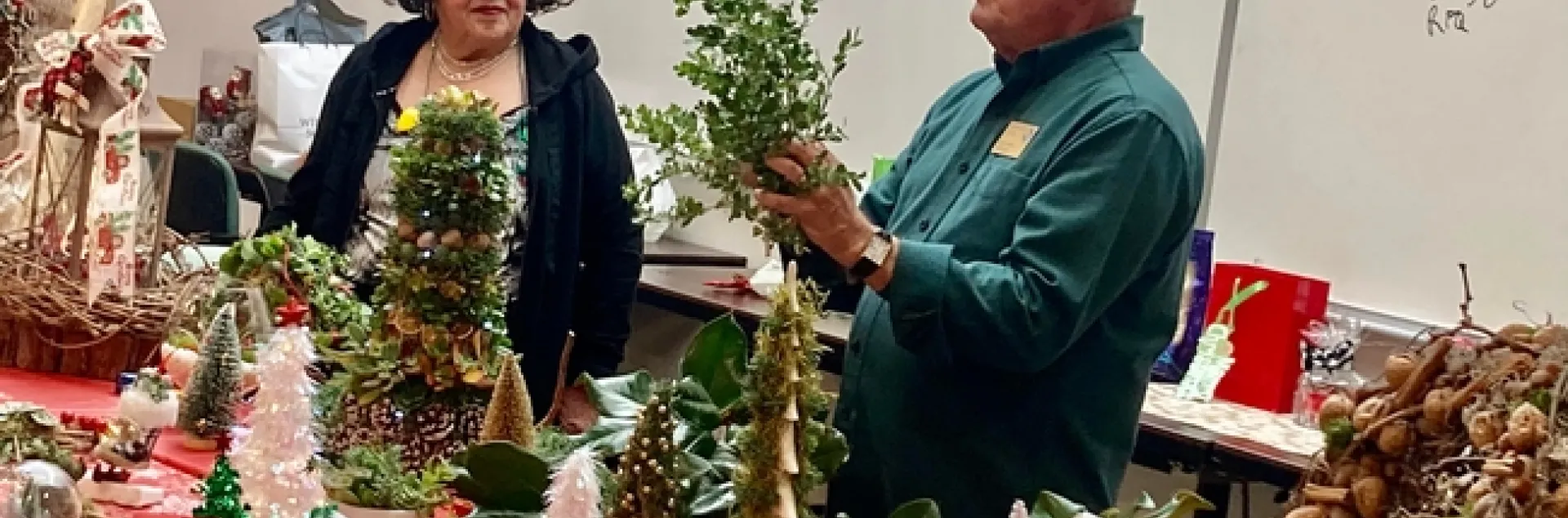 Two Master Gardeners taught a group of seniors how they can easily create lovely Christmas ornaments, wreaths and gifts while minimizing their holiday spending.