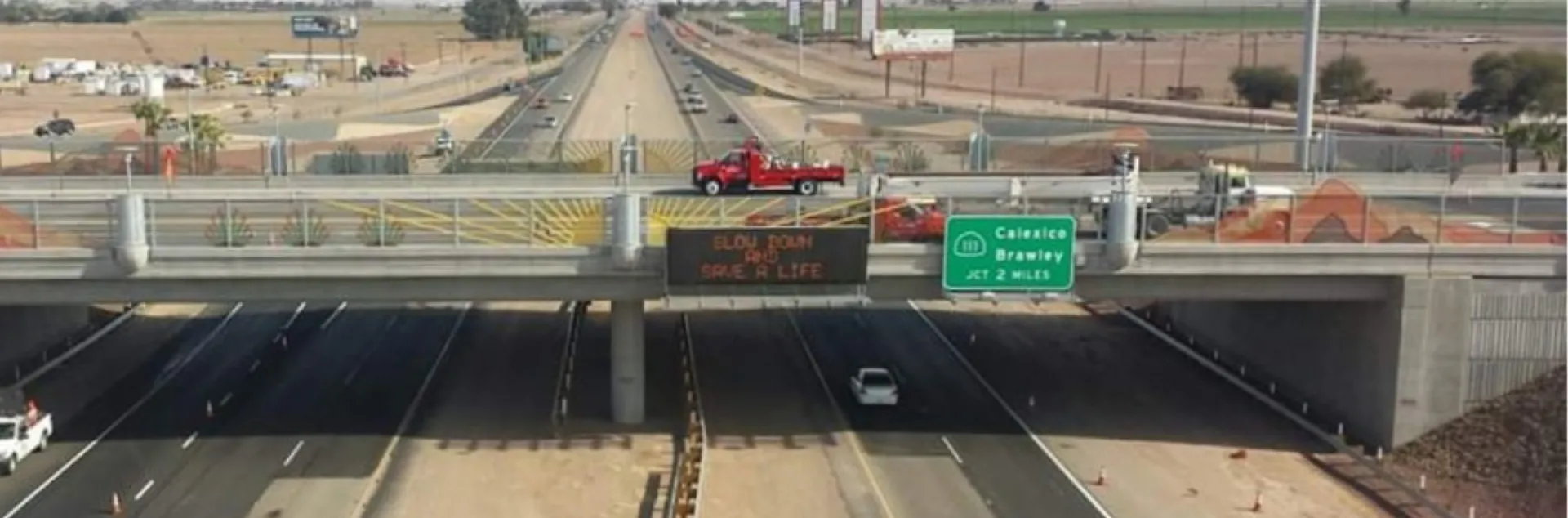 The image at the top shows a freeway overpass in El Centro, Calif.