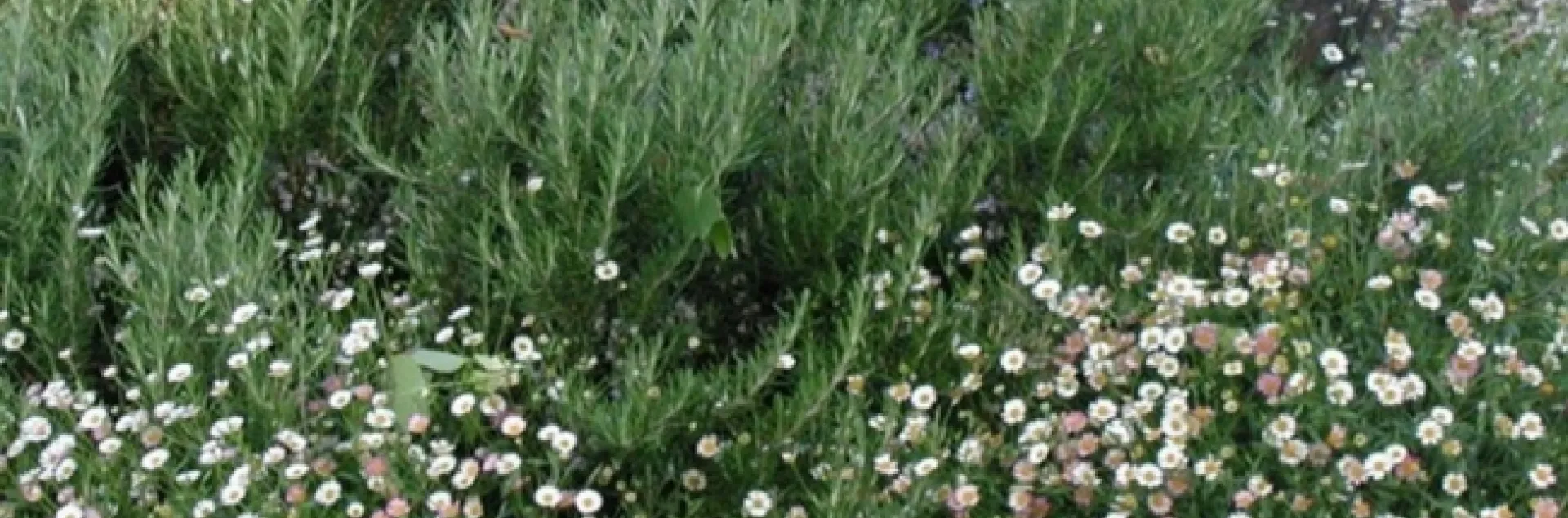 Erigeron karvinskianus, or Santa Barbara Daisy, is a tough, almost carefree perennial and so useful in the garden. Delicate evergreen foliage stays under 12 inches tall, and plants are covered in small daisy-like flowers spring through fall. Flowers emerge white and fade to a pinkish lavender which adds to their interest.
