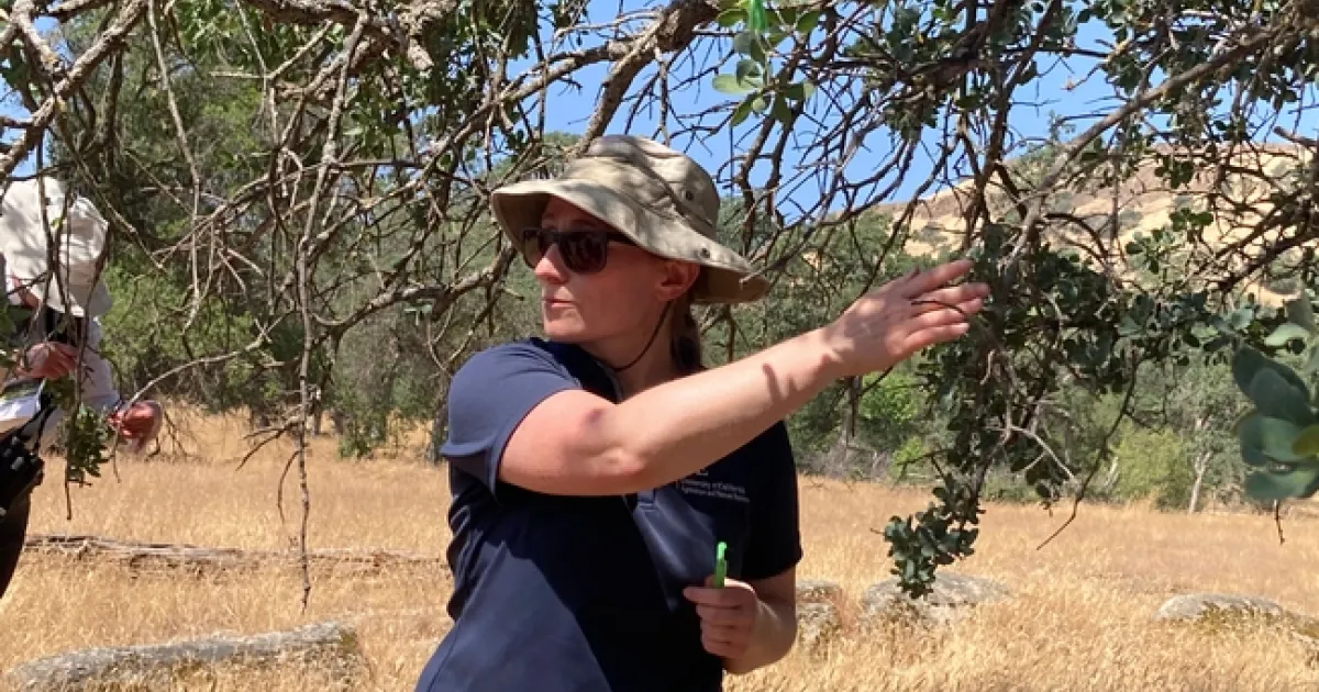 Linder Carr brought her questions to a field day June 3 at the McKenzie Preserve near Prather, one of eight preserves owned by the Sierra Foothill Conservancy, where UC Cooperative Extension and other scientists shared early results of ongoing studies of blue oak trees.