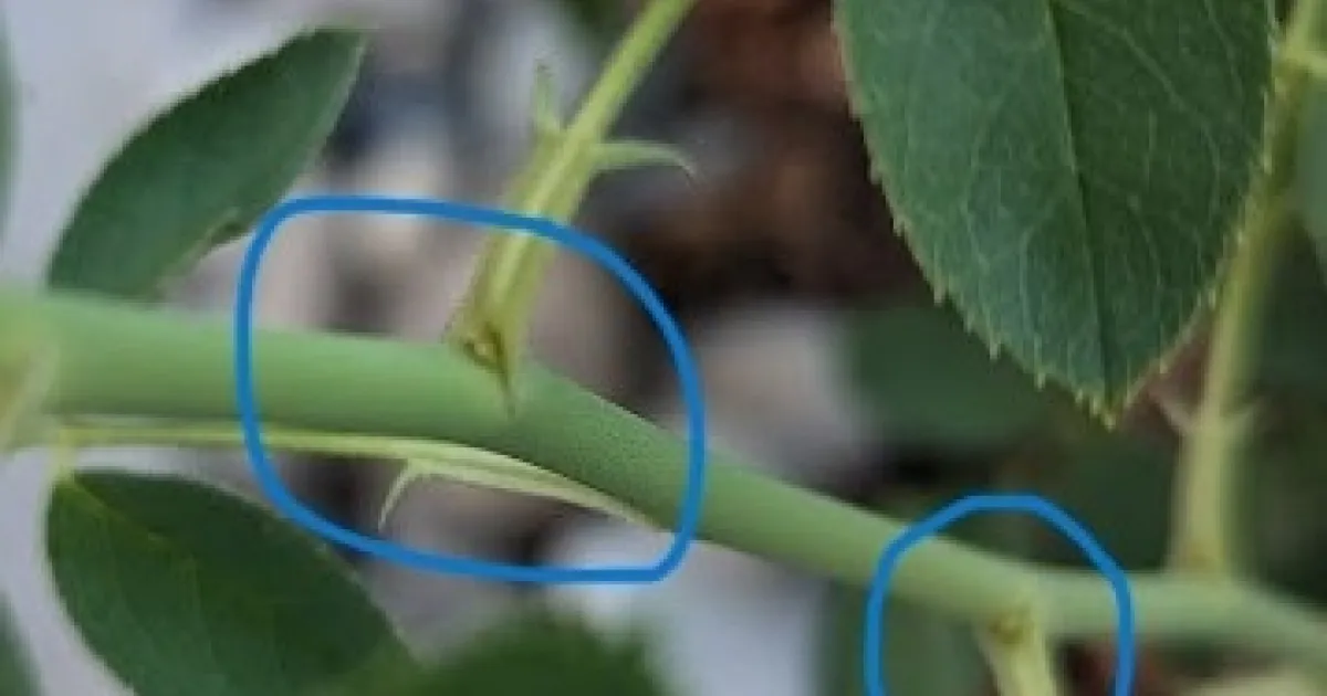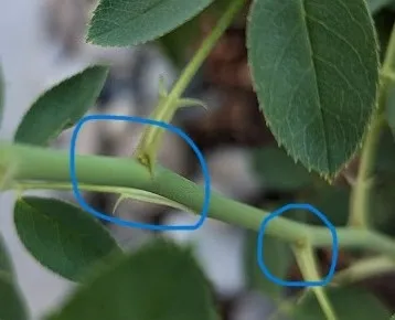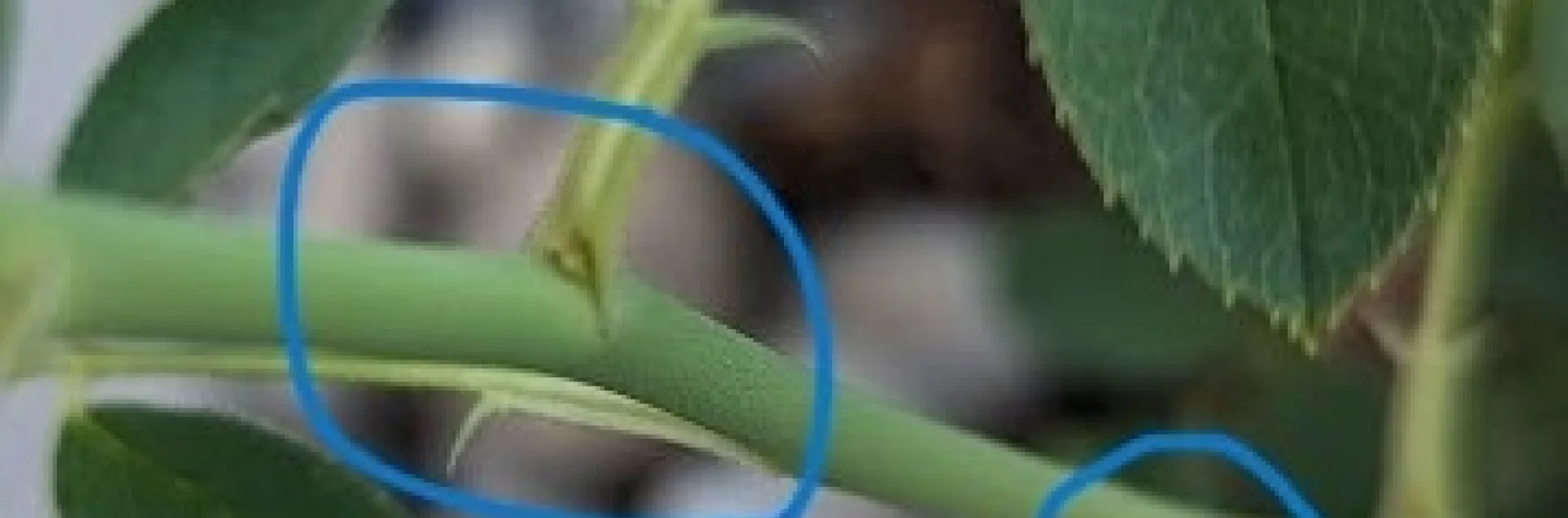 Bud eye with leaflets, indicated by blue circles. (Photo: Rosie D)