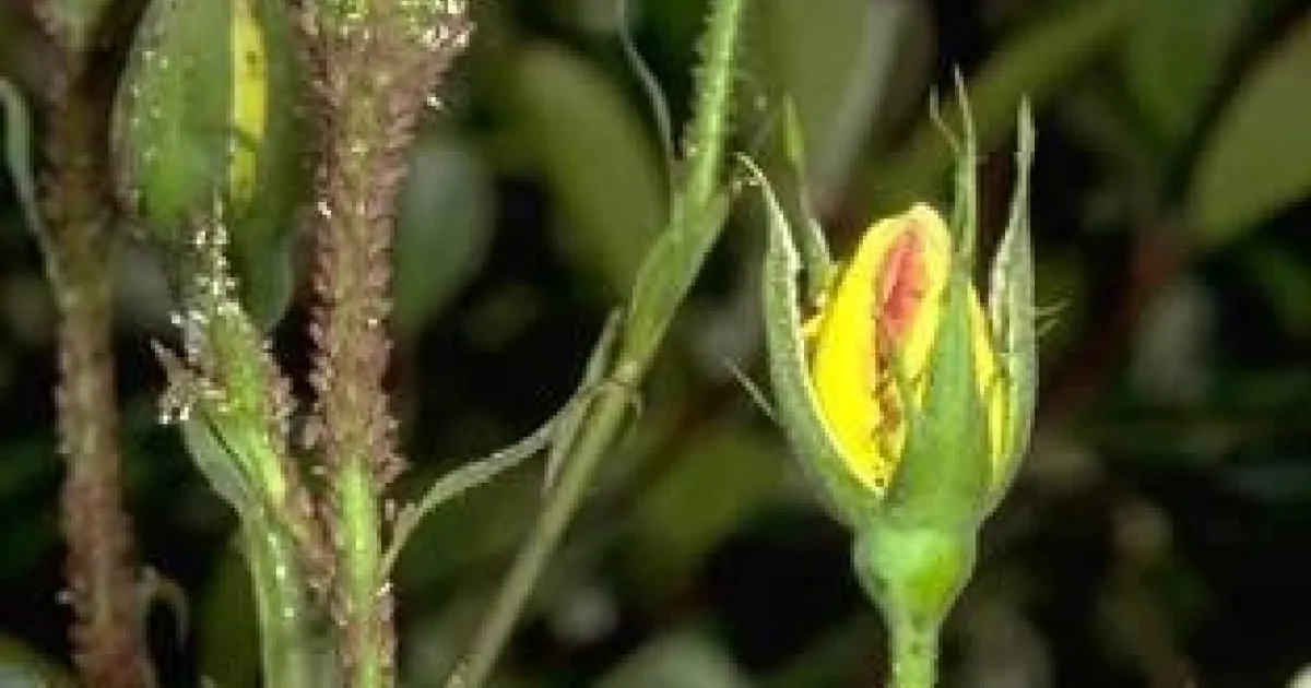 Aphids congregate on a rose bud. (Photo: UC IPM)