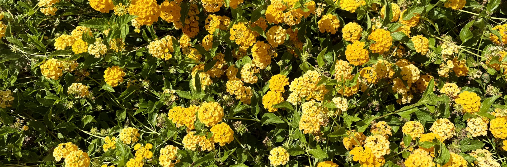 - Trees, shrubs, vines: lantana, trumpet vine (Campsis).