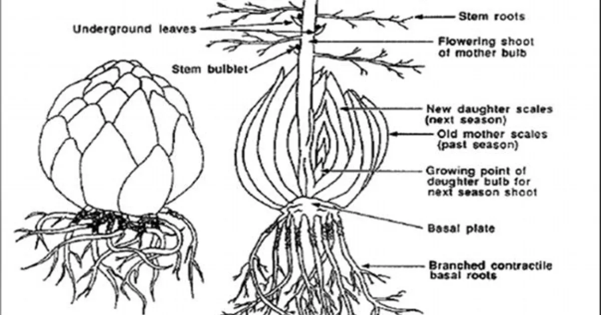 A bulb is comprised of a relatively large, usually sphere shape, underground bud with membranous or abundant overlying leaves starting from a short stem. A bulb's plump leaves, which are extended leaf bases in some species, function as food storage that enable a plant to lie inactive when water is scarce. However, when the environmental condition became advantageous, the bulbs resume their active growth once again. Moreover, some bulbs species are economically important to humans because of their fleshy leaves' taste and nutritional values, like onions, garlic, shallots, and leeks.
