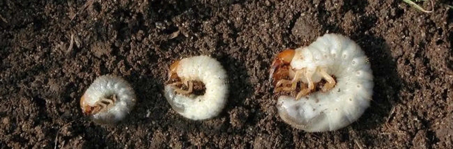 You may be noticing white grubs in your compost piles, lawns, or garden beds. These white, c-shaped critters can be 1/4 inch long or 2 inches long, depending on the species. White grubs are the larvae of some scarab beetles, and though many of them can cause damage to our landscapes, not all of them do.