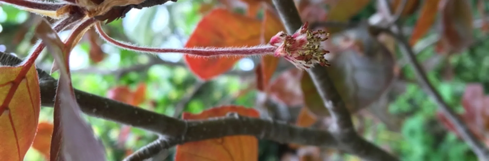The Demonstration Garden at the Ag Center has many examples of plants with both prominent and subtle pubescence. Some are evident from a distance: the ruddy colored hairs on the back of magnolia leaves, while others require close inspection: the interior live oak in the driveway courtyard shows pubescence on the stems of the new branch growth. Pet the lamb's ear, lavender, milkweed and Phlomis for a soothing tactile experience.