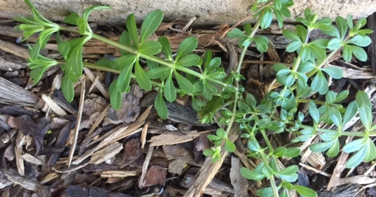 Catchweed bedstraw is a summer annual broadleaf plant that is starting to show in your gardens now! Its bristles attach to people's clothing and the hair of animals, aiding in its dispersal. If you have this plant, get rid of it now. It is very distinctive with a square stem and sticky feeling.