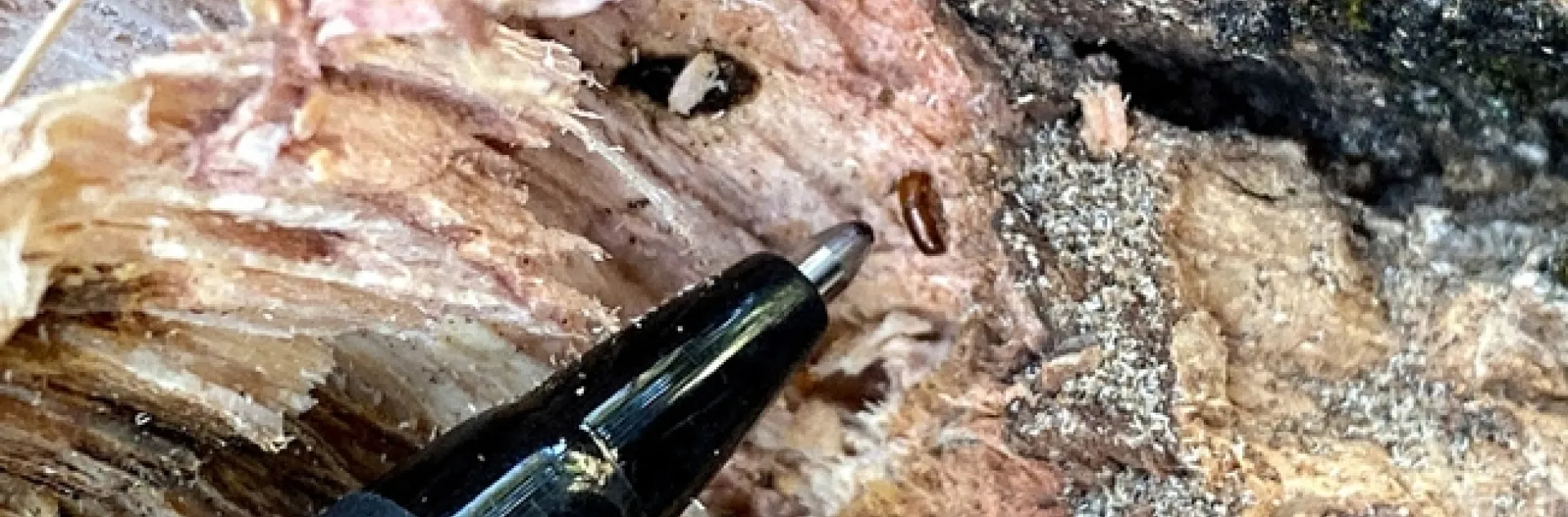 Akif Eskalen, UC Cooperative Extension specialist in the Department of Plant Pathology at UC Davis, has identified a new insect-fungus team that causes oak borer wilt in Northern California Valley and Blue Oaks. It is an ambrosia beetle, commonly known as Mediterranean Oak Borer, which carries several fungi in its mouth. The beetle bores into the tree and introduces fungi to grow for food. The fungi spreads and disturbs the transportation of water and nutrients, causing wilt in the tree.