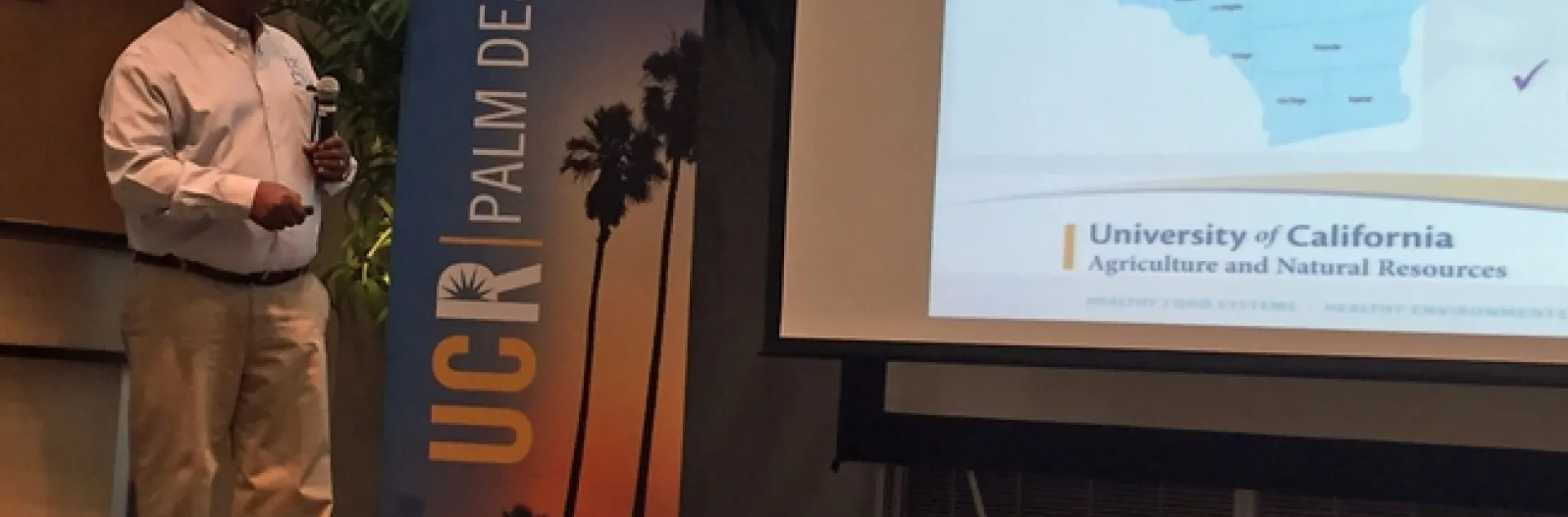 The symposium had speakers and participants from UC, USDA, California Department of Food and Agriculture, the desert agricultural industry, pest control advisors, non-profit institutions and organizations, agricultural commissioners, farm bureaus, Arizona and Mexico universities and the general public.