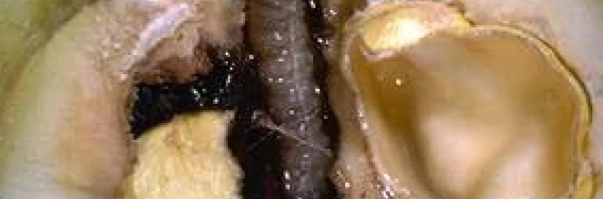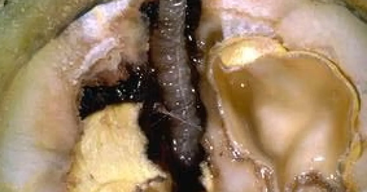 Coddling moth larva in developing walnut.
