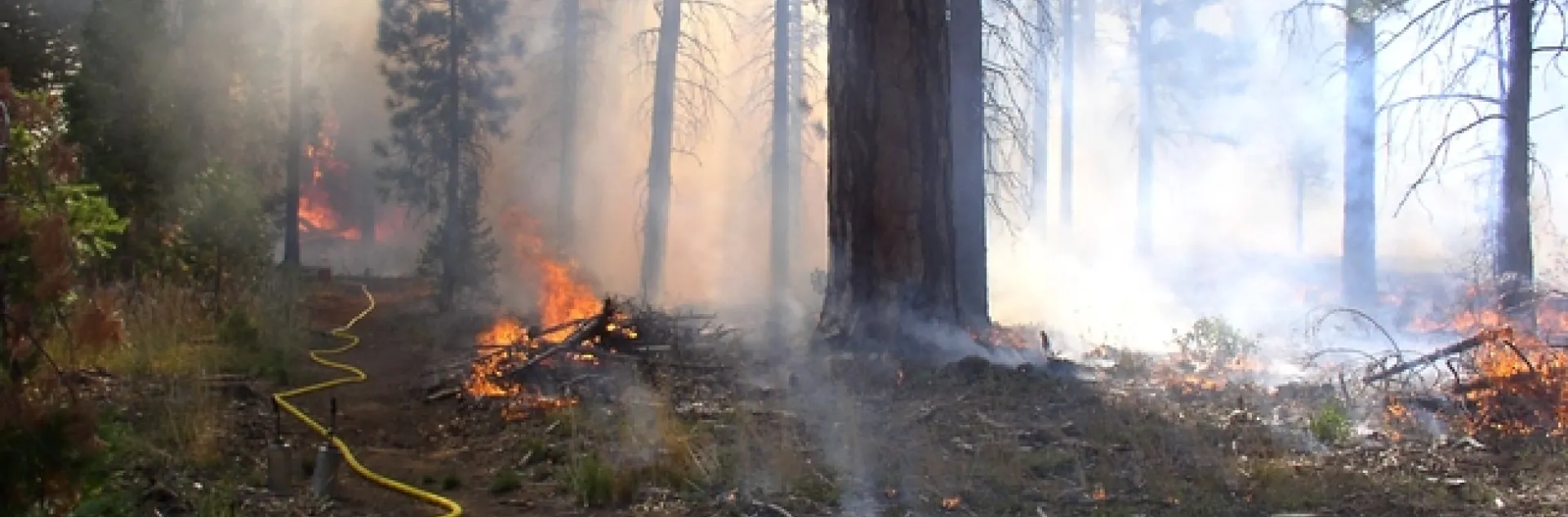 A low severity prescribed fire consumes understory plants and branches on the forest floor, but leaves the mature trees intact. (Photo: Susie Kocher)