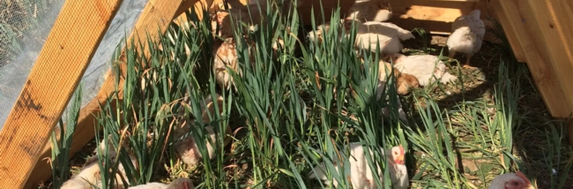 In the trials, chickens are introduced as part of a rotation that includes cover crops and a variety of vegetable crops. In California, chickens were placed on research plots in April following a winter cover crop of vetch, peas, fava beans and oat grass.