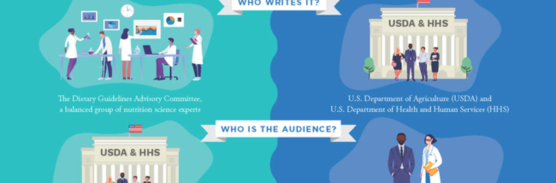 The good news for anyone trying to figure out how to eat healthfully is that this system already exists. Every five years, the U.S. Department of Agriculture (USDA), in partnership with the U.S. Department of Health and Human Services (HHS), convenes a panel of some of the top nutrition researchers from around the country. These academic experts are tasked with reviewing the relevant studies and making recommendations to the USDA and HHS on what a healthy American diet should be. Their most recent report, the Scientific Report of the 2020 Dietary Guidelines Advisory Committee, was recently released. The USDA and HHS will now take the information in the Scientific Report and use it to inform the official Dietary Guidelines for Americans, which are updated every five years. These guidelines affect nutrition standards and determine which foods are provided in federal national programs, from what school-children eat through the National School Lunch Program to what families with young children shop for through the Women, Infants and Children Program, and many other programs. The guidelines are also used by nutritionists and educators throughout the country to help increase people's knowledge of how to eat healthfully, including nutrition education taught to children and adults through the CalFresh Healthy Living, UC program and the Expanded Food and Nutrition Education Program.