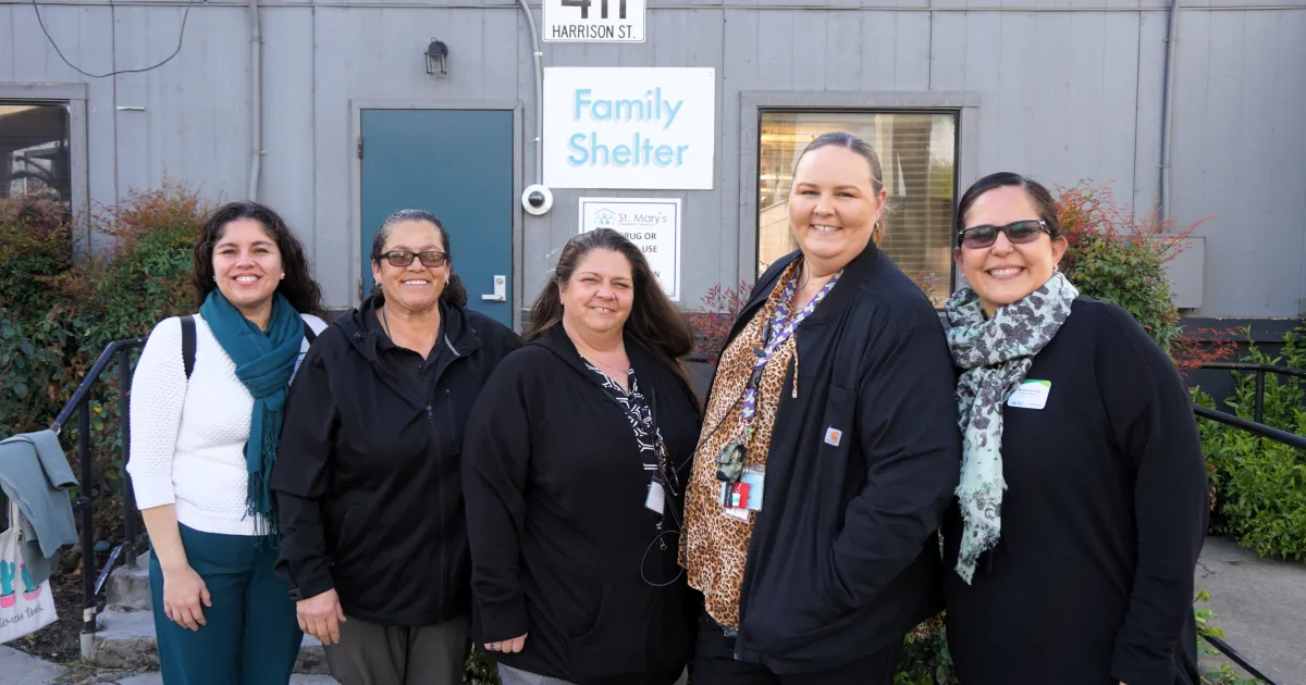 From left, Lorena Hoyos, community nutrition supervisor for CalFresh Healthy Living, UCCE in San Joaquin County; Mercedes Moreno, program manager at St. Mary's; Jessica McKercher and Renee Bell, case managers at St. Mary's; and Maricarmen Anaya, CalFresh Healthy Living, UCCE nutrition educator enjoy a productive partnership that benefits the community.