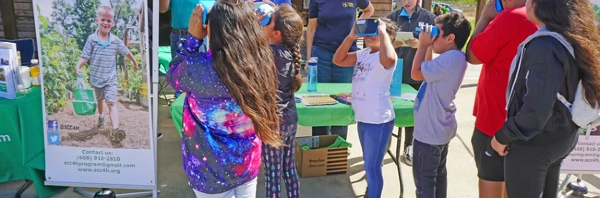 The UCCE 4-H program brought virtual reality goggles that allowed children to look in any direction for a view under the sea, complete with coral, fish and a sea turtle. Santa Clara County 4-H ambassador Alexa Russo used a tablet computer to interact with the children as they looked through the goggles, asking questions to engage them in the experience.