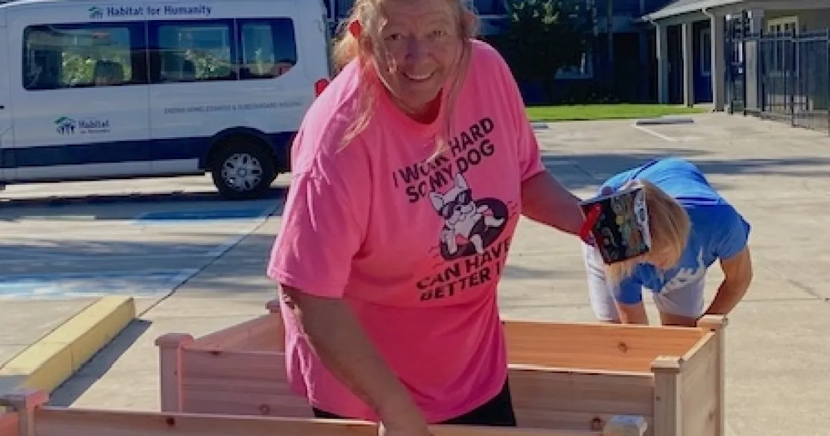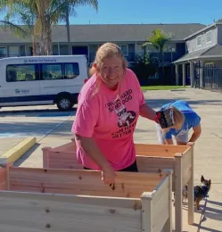Harmony Village is a 62-unit permanent supportive housing project in Yuba City for low-income individuals who are either homeless or precariously housed, with priority going to veterans, the disabled and the elderly. A grant from the UC Sustainable Agriculture Research and Education Program (SAREP) Small Grants Program enabled Sutter-Yuba County Director Whitney Brim-DeForest, UC Master Gardner Program Coordinator Cheryl Hoke and volunteers to work with residents of Harmony Village in creating a sustainable food program.