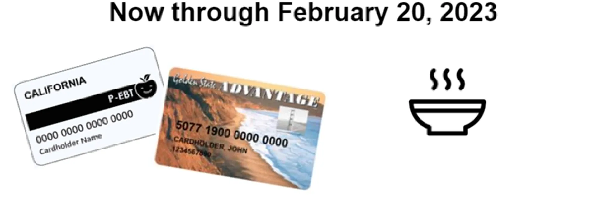 In normal circumstances CalFresh can only be used to purchase cold foods or foods intended for off-site consumption. There are exceptions to this, including the Restaurant Meals Program intended for people who are 60+, have a disability, or are experiencing homelessness. However, now through Feb 20th all CalFresh cardholders can purchase hot foods or foods intended for ON-site consumption at authorized retailers in San Luis Obispo and Santa Barbara Counties.