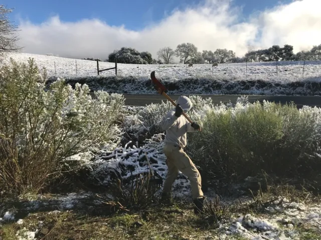 Clearing brush, to be prepared for future fire was one of the key tasks that the team helped HREC with.
