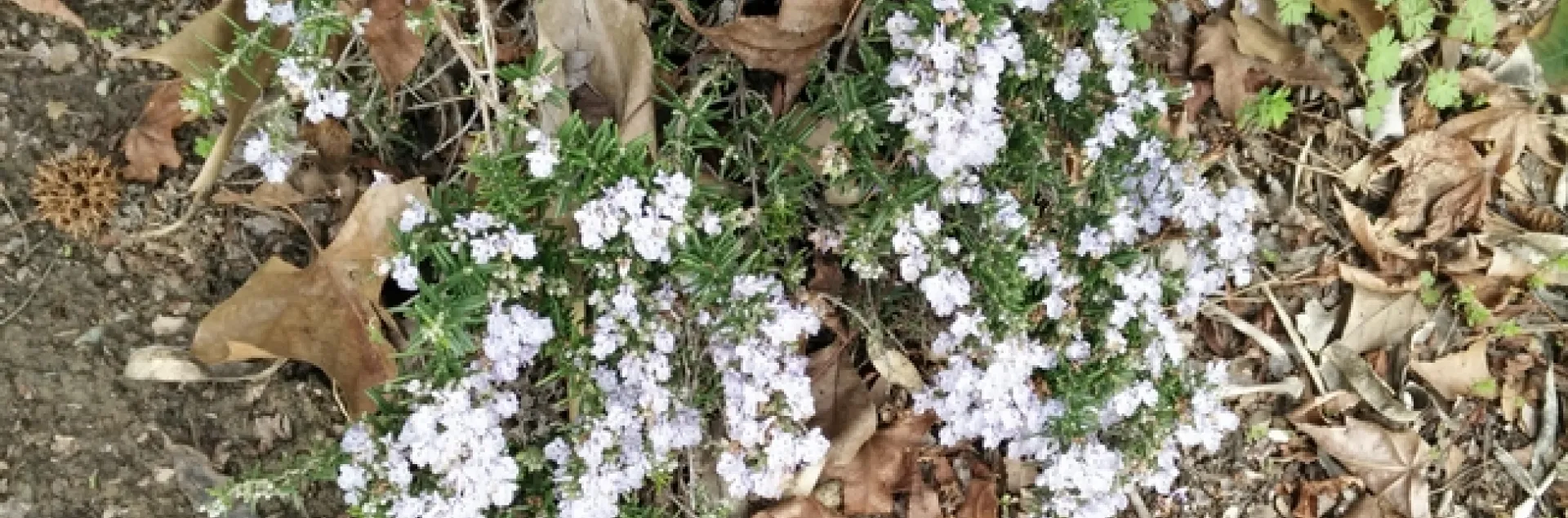 You sent a photo of a plant for us to identify. It is rosemary (Rosmarinus officinalis). While it's not native to California (it originated in the Mediterranean area), it is very well adapted to California's similar Mediterranean climate. Its flowers range in color from various shades of blue to even pink and white. Its growth habit ranges from stiff and erect, rounded, or low and creeping, depending on variety or cultivar.