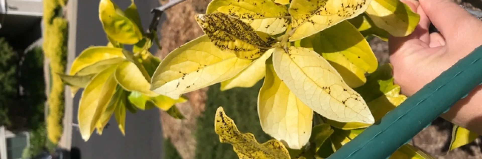 MGCC Help Desk Request: What's going on with my persimmon tree? I worked a bunch of compost into the soil around it in the spring and mulched with leaves. But it looks like it needs nutrients. What should I give it? This is its third year since planting. Thanks