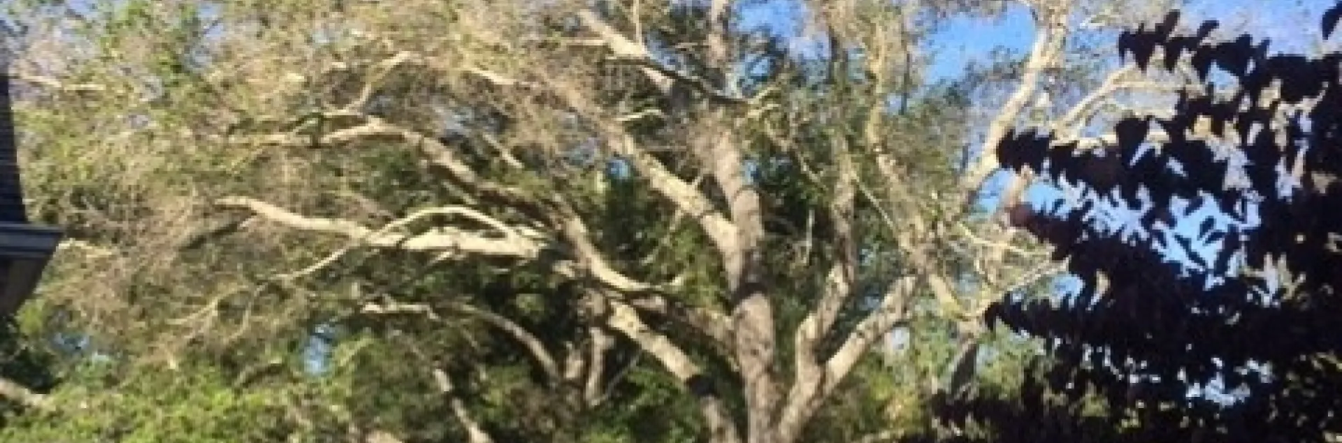 Help Desk Response: Thank you for contacting the UC Master Gardener Program Help Desk with your question about your oak tree. First off, let me say that I am sorry about your oak tree. It does not look very healthy in the picture you provided. While it is common for live oaks to shed significant leaves in the spring, it sounds like you are seeing a more general decline over years which is likely due to other causes. I also should note that our advice is based solely on the picture, as opposed to the arborist who come to your house and personally reviewed the tree on-site. Their advice is likely to be more accurate. You mentioned that they want to treat the tree yearly with a fungicide. Did they actually diagnose a fungal disease?