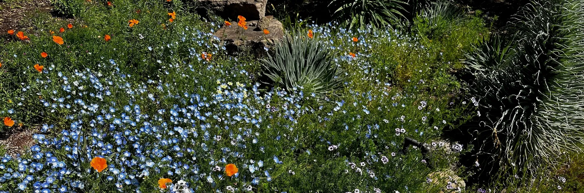 As I write this, the first signs of fall are all around us — a hint of leaves turning color, cooler temperatures, and rain on the horizon. In California this means we are approaching the season for native plants to begin their annual cycle. Because they live their complete lifecycle in one year, beginning in fall to winter, blooming in spring and then setting seed in the summer, California native annual wildflowers are usually not sown in late spring or summer. Instead, we start sowing them in November as the rains begin. We can sow them through March, although November to January is optimal and allows for less water.