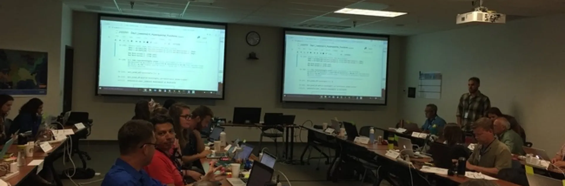 The afternoon focused on Lidar (yay!) and prior to coding we talked about discrete and waveform data and collection, and the opentopography (http://www.opentopography.org/) project with Benjamin Gross. The opentopography talk was really interesting. They are not just a data distributor any more, they also provide a HPC framework (mostly TauDEM for now) on their servers at SDSC (http://www.sdsc.edu/). They are going to roll out a user-initiated HPC functionality soon, so stay tuned for their new "pluggable assets" program. This is well worth checking into. We also spent some time live coding with Python with Bridget Hass working with a CHM from the SERC site in California, and had a nerve-wracking code challenge to wrap up the day.