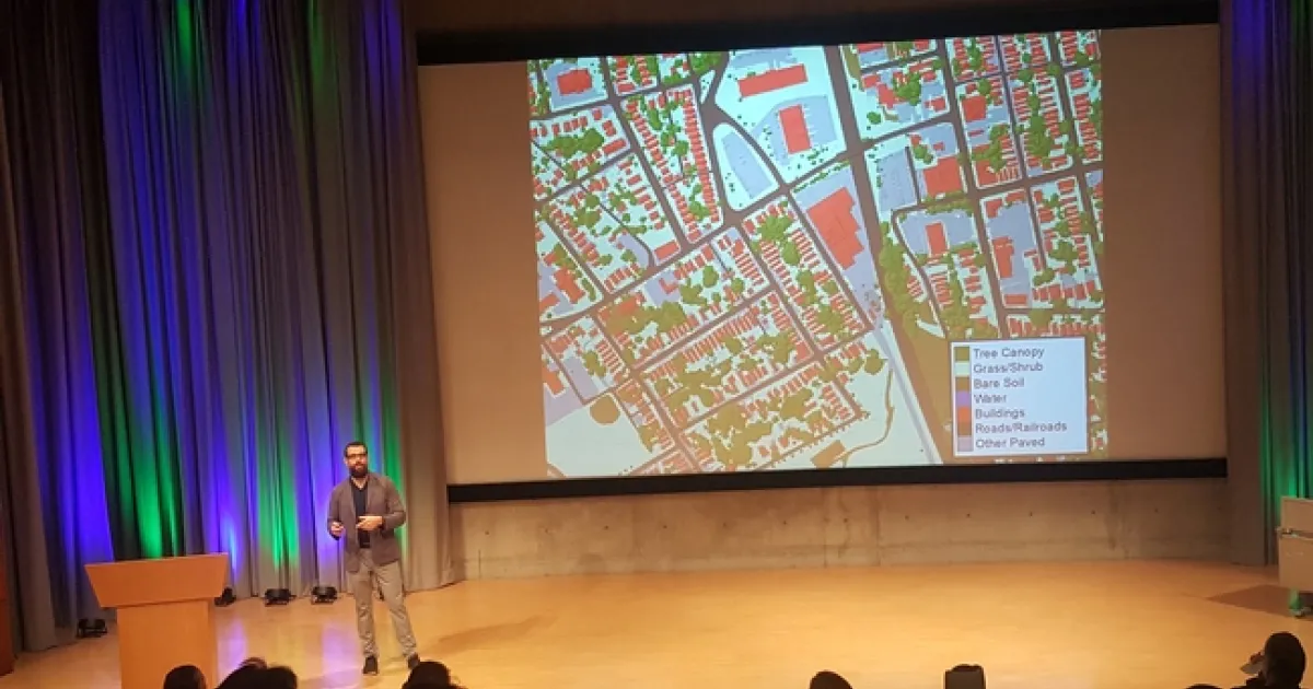 ESRI held its first ‘Imagery Education Summit' in Redlands California this week, and even though I came with high expectations, I was still pleasantly surprised with the caliber of the summit's presentations. It is very difficult to pick out a favorite among these talks; however, I can say that I particularly enjoyed the presentations by Jarlath O'Neil Dunn from the University of Vermont (pictured below), on ‘Success Stories and Progress' in image analysis and mapping, and by Jason Ur from Harvard University, regarding his work with ‘Drones and Archaeology Case Studies' in Iraq. The innovative approaches that they and others at the summit presented were truly inspiring!