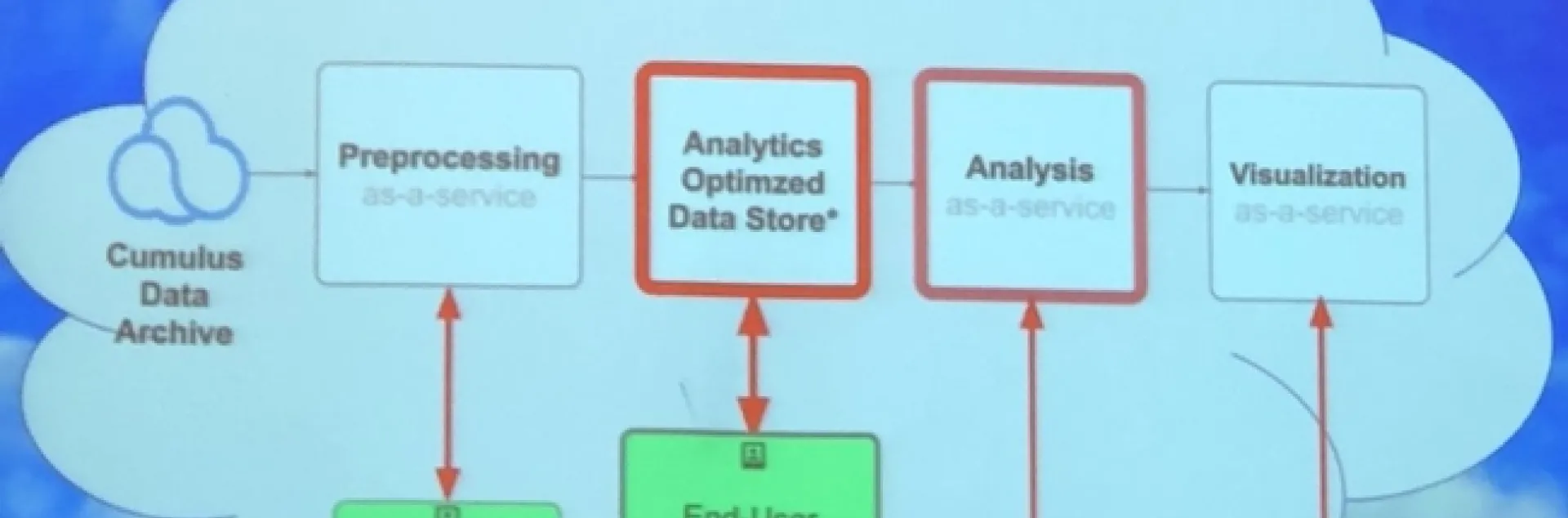We can use the cloud as infrastructure, for sharing data and results, and as software (e.g. ArcGIS Online, Google Earth Engine). Above is a cool graphic showing one vision of the cloud as a scaled and optimized workflow that takes advantage of the cloud: from pre-processing, to analytics-optimized data store, to analysis, to visualization. Why this is a better vision: some massive processing engines, such as SPARC or others, require that data be organized in a particular way (e.g. Google Big Table, Parquet, or DataCube). This means we can really crank on processing, especially with giant raster stacks. And at each step in the workflow, end-users (be they machines or people) can interact with the data. Those are the green boxes in the figure above. Super fun discussion, leading to importance of training, and how to do this best. Tristan also mentioned Cyverse, a new NSF project, which they are testing out for their workshops.