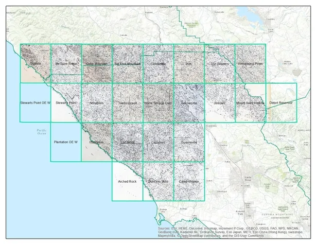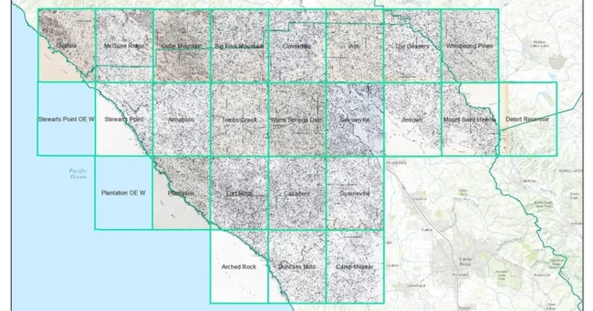 We found 22 quad sheets for Sonoma County in the Koshland BioScience Library at UC Berkeley, and embarked upon a test digitization project.