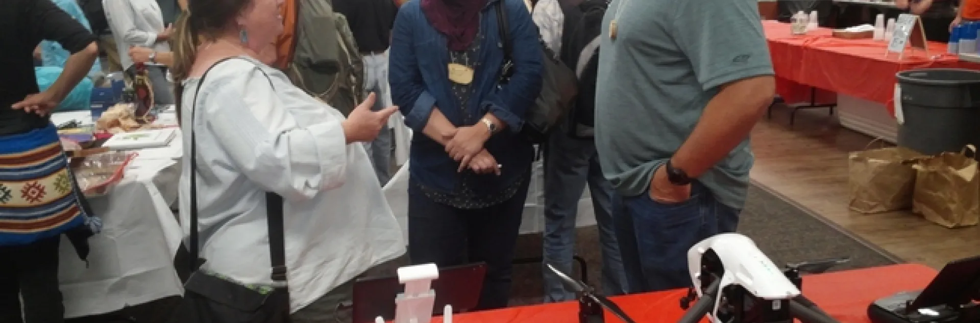 Working with Greg Ira of the California Naturalist Program, I led a Smartphone GPS and Mapping Skills workshop, which provided an introduction to free and inexpensive apps for collecting map data in the field and creating custom online maps out of the data that you collect. Meanwhile, our friend Ken-ichi Ueda led a similarly themed workshop that covered the outstanding mobile and online app that he developed, iNaturalist (http://www.inaturalist.org/); as a tool for furthering citizen science efforts. Citizen Science was a strong theme in this year's conference and we were pleased to see how much interest participants expressed in using spatial technologies to facilitate greater public engagement in science. Further reinforcing this theme, our UC Cooperative Extension Specialist colleague, Roger Baldwin, had a table at the conference displaying the Wild Pig Damage App that IGIS just built and published to the Google Play Store (https://play.google.com/store/apps/details?id=com.ucanr.wildpigdamage). This app was created through a collaborative effort between UC Cooperative Extension and IGIS to facilitate public collection of spatial records and pictures pertaining to wild pig damage on range, forest and agricultural lands throughout the state of California. On the final night of the conference our IGIS Academic Coordinator, Andy Lyons, presented a poster, which showcased the variety of activities and services that IGIS is currently engaged in, including mobile data collection, web mapping, geospatial analytics, training, and drone operations. Complementing Andy's poster session, I set up an adjacent table display with an assorted of IGIS's new drone equipment. This attracted a lot of attention to the scientific interests of IGIS and prompted many discussions of future applications for drone technology in relation to ecological monitoring and restoration.