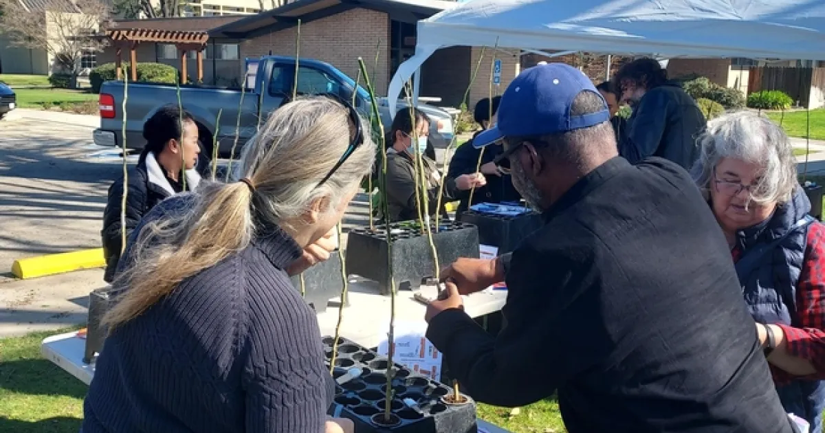 UCCE Small Farms Fresno hosted a very well attended grafting workshop at Kearney REC on Thursday, February 22nd. Attendees rotated through four stations and spent the day learning grafting techniques from local experts and UCCE specialists. Burling Leong is a well known nursery owner in Visalia and she was instructing grafting of rose cultivars to rootstocks. Industry grafting professional Manuel Calderon was there to lead groups though techniques for grafting stone fruit. Citrus expert Rock Christiano worked with attendees on grafting citrus and from UCCE Stanislaus County, Fayrouz Buojaylah was in the greenhouse showing the crowd her method of grafting tomato seedlings. After a full day of hands on learning, attendees from small farms and home gardens were eager to get home and incorporate grafting into their spring plans.
