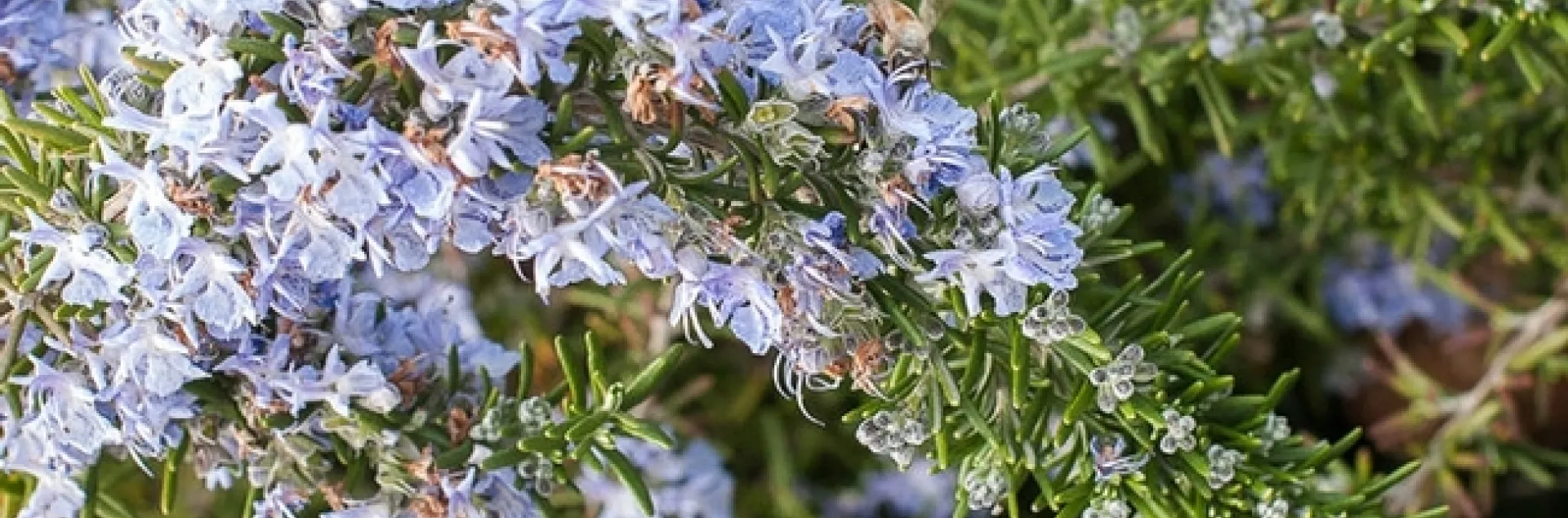 Dwarf Rosemary (Rosmarinus prostratus) This particular rosemary species is a low-growing groundcover. It is a great choice for rock gardens, reaching only 6 inches tall. It produces purple flowers in the summer and attracts pollinators and can be used for culinary purposes (bottom).
