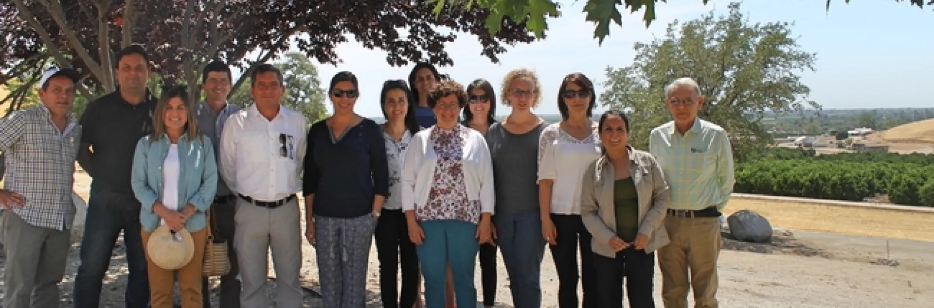 Monserrat Monsevalenzuela organized a visit to California by a group of Chilean researchers, nurserymen and regulators tto speak with various groups about how the California citrus industry is responding to Asian citrus psyllid and huanglongbing disease. At the Lindcove Research and Extension Center, Director Dr. Beth Grafton-Cardwell spoke about the Lindcove REC research program, citrus IPM and the status of the ACP/HLB management program. Casey Schoenleber spoke about the Citrus Clonal Protection Program and Dr. Melinda Klein spoke about the Citrus Research Board research program.
